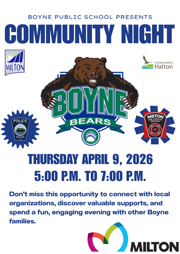 - Apr 9 - Boyne Community Outreach Event 5:00pm-7:00pm